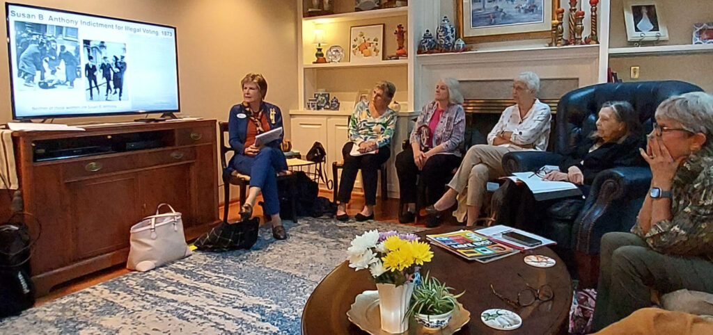 In May, 2025, Four Flags Chapter, NSDAR, installed new officers for 2025 and were treated to a program on the Battle of Great Bridge, December 9, 1775 by the proprietress of a tavern where the wounded from the battle were treated.